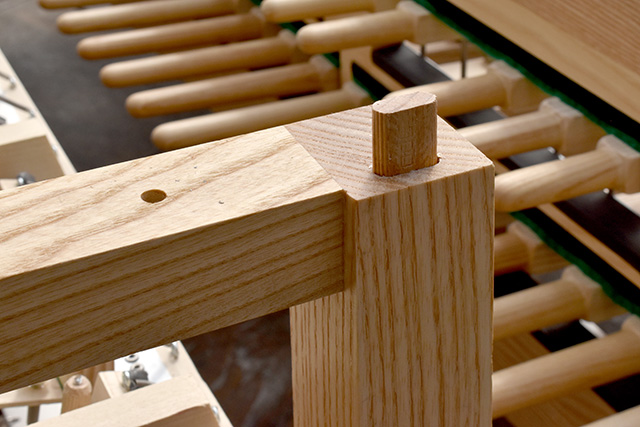Stap 6: Aan de achterzijde van de hamers zit een houten moer om de hamers exact af te stellen.